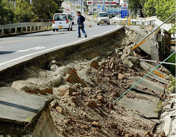 В четверг в префектуре Кумамото на западном побережье юго-западного японского острова Кюсю произошло первое крупное землетрясение магнитудой 6.5. В 1.25 в субботу (19.25 мск в пятницу) там же произошло землетрясение, по силе в 16 раз превышающее предыдущее, его магнитуда составила 7.3.