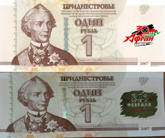 Тирасполь, 14 февраля. /Новости Приднестровья/.  Как сообщает пресс-служба Приднестровского республиканского банка, в интернете появились изображения банкнот номиналом 1 рубль c надпечатками «30 лет помним Афган» и «23 февраля - День защитника Отечества».
