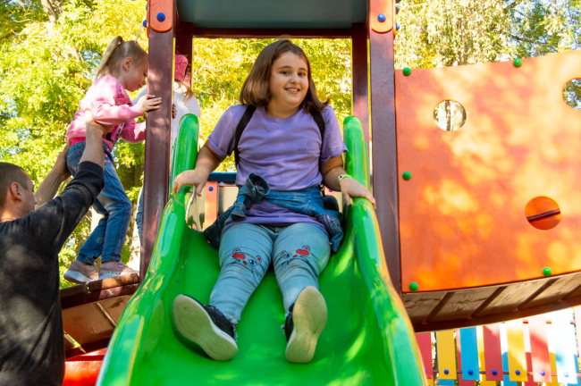 «Спасибо тем, кто построил эту площадку. Они постарались и сделали очень крутую площадку для детей», - сказала Оля Ений.