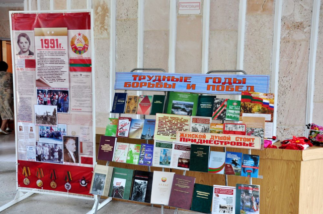 Так, как сообщает пресс-служба госадминистрации, на экспозиции представлены личные вещи активных участниц событий 1991 года, жительницы с. Карагаш Галины Фоминых и Александры Турукиной, комплекс материалов защитницы ПМР участвовавшей в боевых действиях в 1992 году Скорецкой Г. В.