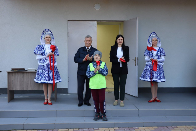 Красную ленточку у входа в здание перерезали глава госадминистрации Василий Тищенко, председатель райгорсовета Татьяна Залевская и воспитанник ДЮСШ футбола Даниил Кроль. После этого почётные гости и ребята смогли пройти в здание и ознакомиться с обновлёнными помещениями.