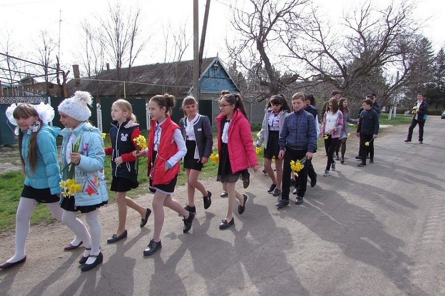 Минутой молчания присутствующие почтили память всех тех, кто не вернулся с полей сражений, кто пал в бою, освобождая родное село, к мемориалу легли живые цветы.