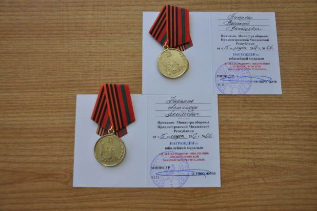 Слободзея, 26 мая. /Новости Приднестровья/. Юбилейные награды «25 лет народному ополчению Приднестровской Молдавской Республики» получили более 20 ополченцев Слободзейского района. Среди них — Федот Цыбульский, Татьяна Степанова, Василий Бабой, Василий Шумейко, Андрей Белоус, командир народного ополчения в 1992 года Юрий Затыка и многие другие, уточняется на сайте местной госадминистрации.