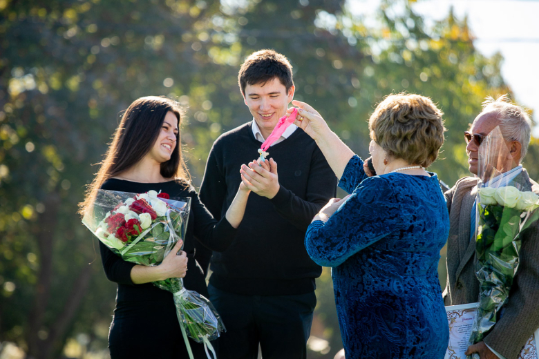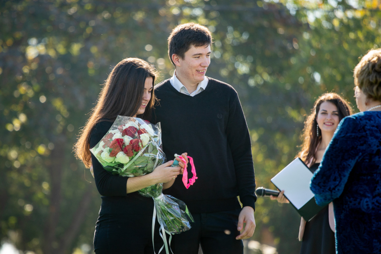 Ребята встречаются больше года. Несколько месяцев назад Влад Албук решил попросить Елену выйти за него замуж. Хотел сделать это необычно. В итоге свидетелями этого события стали сотни тираспольчан. О том, что чувствовали в этот момент теперь уже будущие супруги, расскажут фото.