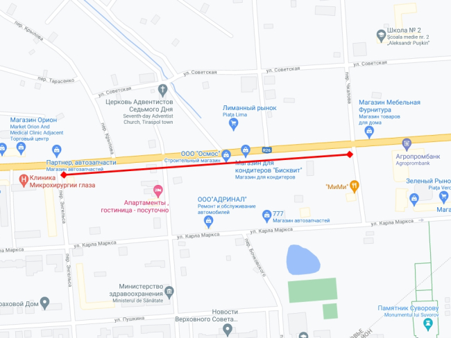 Тирасполь, 8 июня. /Новости Приднестровья/. С 9 по 25 июня по ул. Карла Либкнехта в Тирасполе на участке от пер. Энгельса до пер. Чкалова будет перекрыто движение автотранспорта. Там проведут работы по ремонту дорожного полотна, сообщается на сайте столичной госадминистрации.