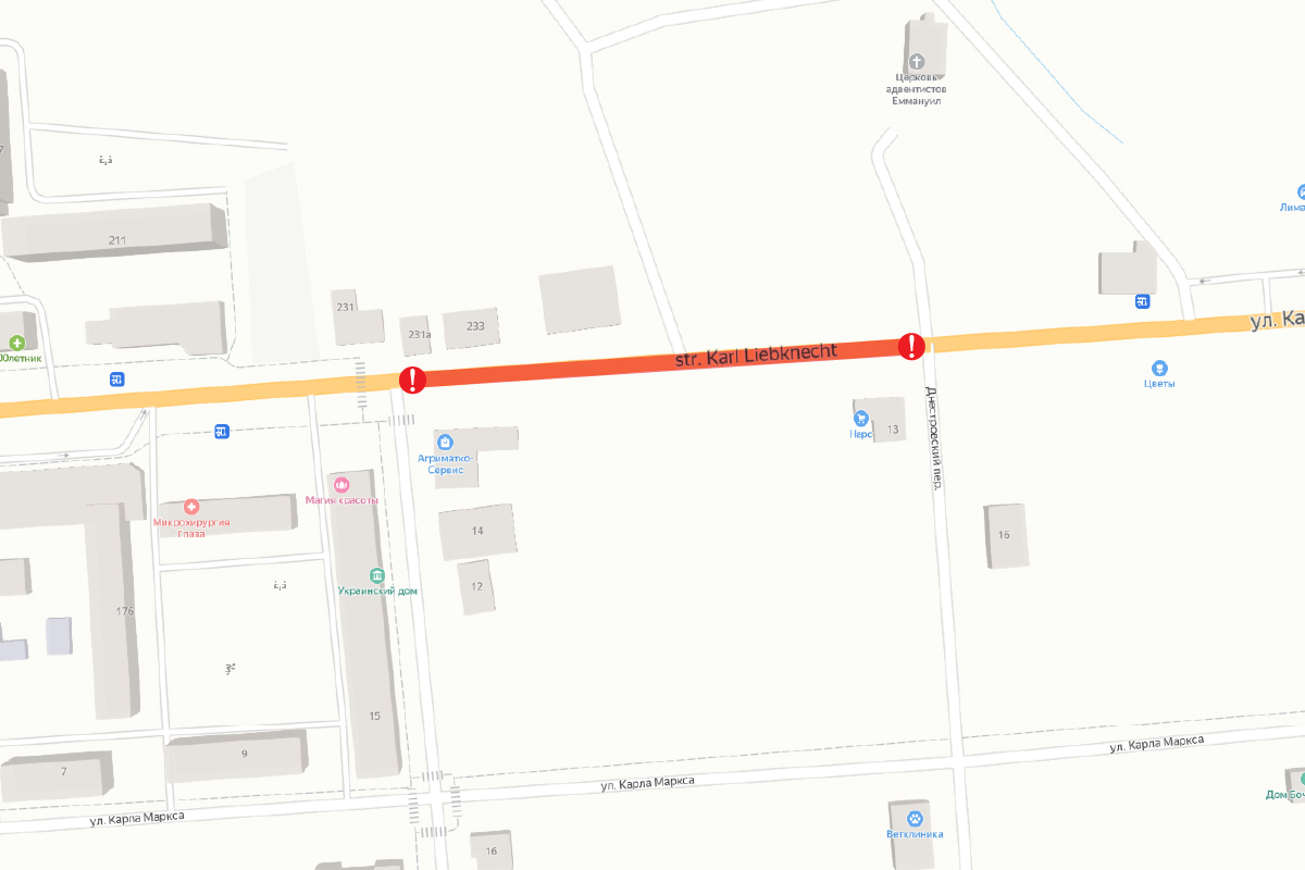 А вот ремонт по ул. Карла Либкнехта продлится до 8 мая. Реконструировать водопровод будут от пер. Днестровского до пер. Энгельса. Движение автотранспорта по этому участку ограничат по нечётной стороне.