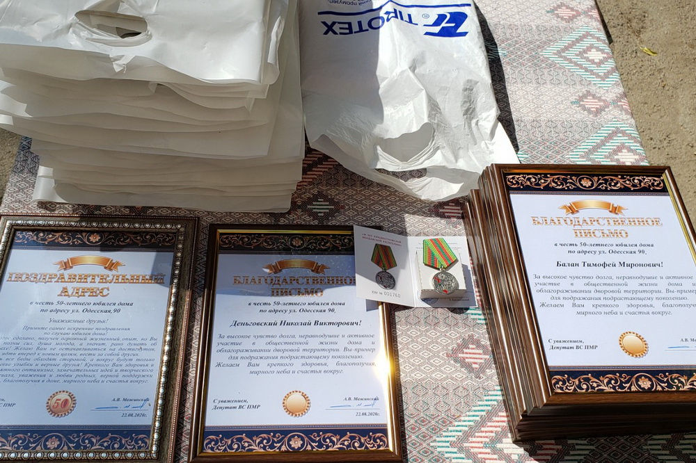 Тирасполь, 22 августа. /Новости Приднестровья/. Сегодня в Тирасполе жильцы пятиэтажки № 90 по улице Одесской в честь 50-летнего юбилея своего дома решили устроить дворовый праздник. Инициативу поддержал депутат Верховного Совета Андрей Межинский и организовал торжественное мероприятие с праздничным фуршетом.