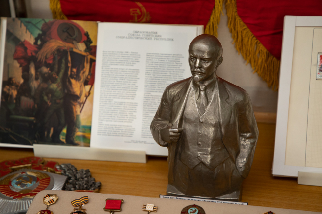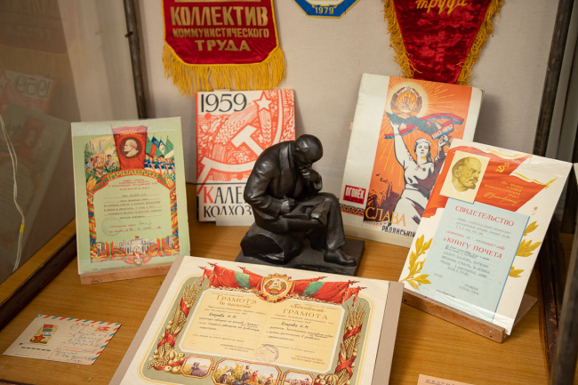 На ней представлено более сотни экспонатов, отражающих советскую эпоху