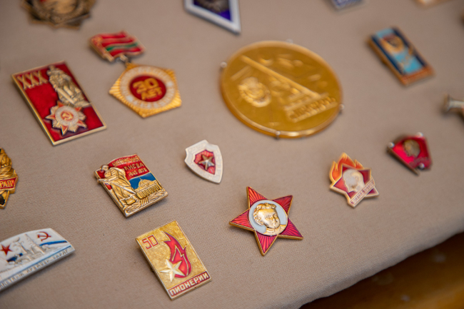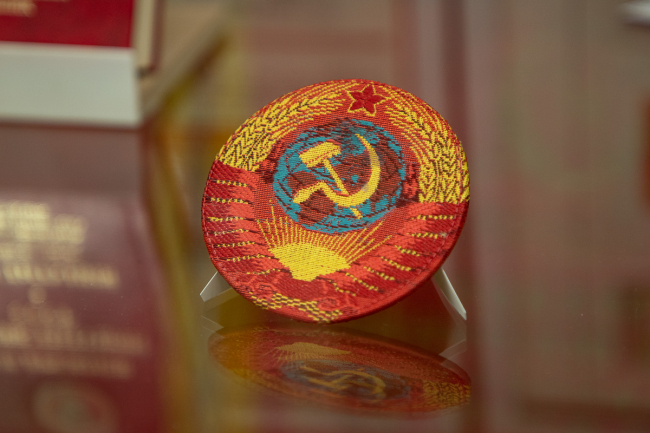 Экспонаты посвящены разным сферам жизни человека, но у всех есть одна составляющая, которая их объединяет, – государственная символика СССР.
