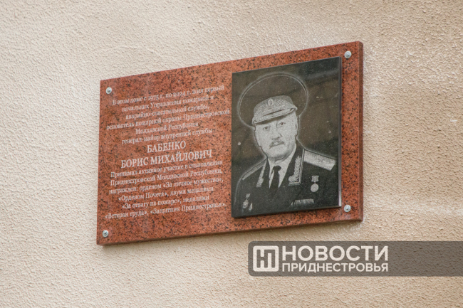 Тирасполь, 16 апреля. /Новости Приднестровья/. Сегодня в Тирасполе прошло торжественное открытие мемориальной доски в память о первом начальнике Управления пожарной и аварийно-спасательной службы Борисе Бабенко. Табличка разместилась на улице Свердлова, 96 – в доме, где он жил.