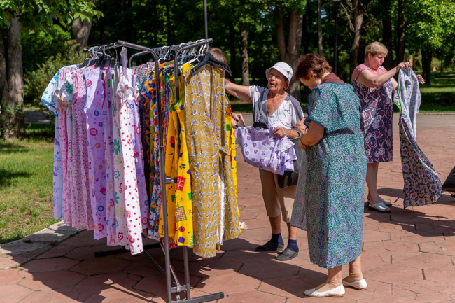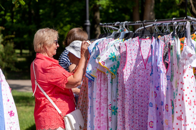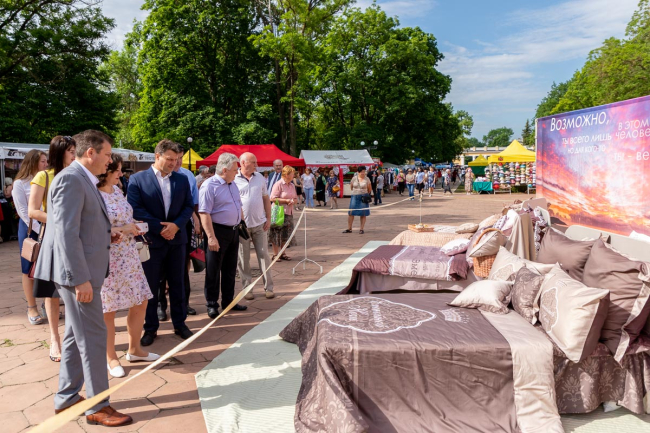 Ознакомиться с ассортиментом продукции предприятий гости праздника могли у главной сцены парка. Женская и мужская одежда отечественных торговых марок была представлена моделями на дефиле.