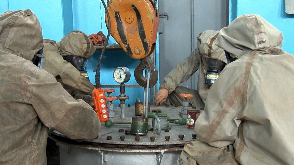 По легенде, при погрузочно-разгрузочных работах из-за обрыва стропы упал контейнер с хлором, и произошла его разгерметизация. Для ликвидации последствий вокруг здания, где хранится жидкий хлор, включили водяную завесу. Прибывшие пожарные дополнительно залили контейнер водой. Затем работники водоканала опустили его в специальный саркофаг. Из него при незначительной разгерметизации можно производить хлорирование воды.
