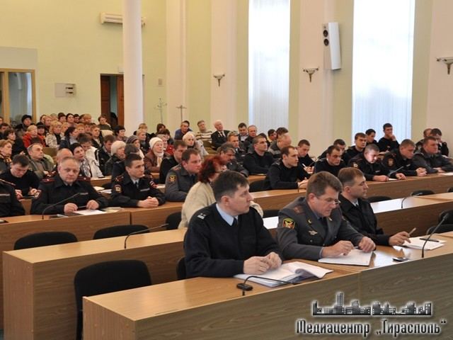 Начальник столичного ГУВД Александр Лещинский доложил о работе гарнизона участковых инспекторов, охватывающего города Тирасполь и Днестровск, а также село Кременчуг. По его словам, участковых на сегодняшний день меньше чем требуется: по штату полагается 63 сотрудника, однако работает только 40. Самая большая нехватка участковых отмечена в микрорайоне Центральном (некомплект 18 человек). В относящемся к данному микрорайону Кировском посёлке должно работать 6 участковых, но уже второй год работает только 2 участковых.