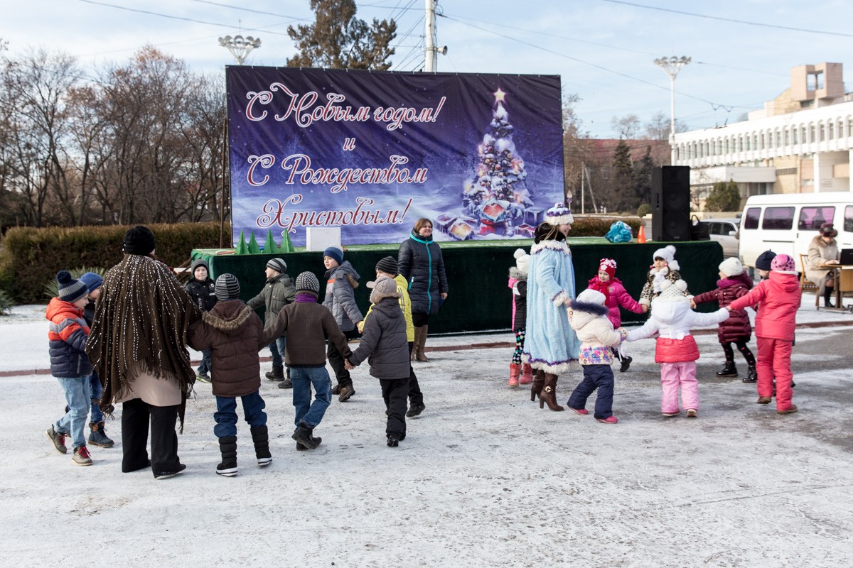«У нас было много утренников в филиалах, школах и детсадах, но вот главная городская ёлка проходит здесь. Мы привлекли специалистов из центра социально-воспитательной работы и станции юных туристов. У нас очень весёлые баба Яга и Снегурочка, а поскольку на улице такой лёгкий морозец, естественно, развлекательная программа составлена из подвижных программ и конкурсов», — рассказала главный специалист отдела дополнительного образования и делам молодёжи столичного УНО Оксана Синьковская.