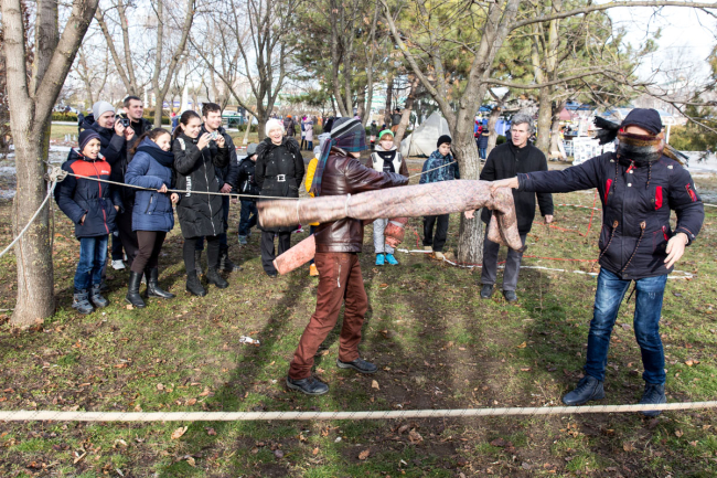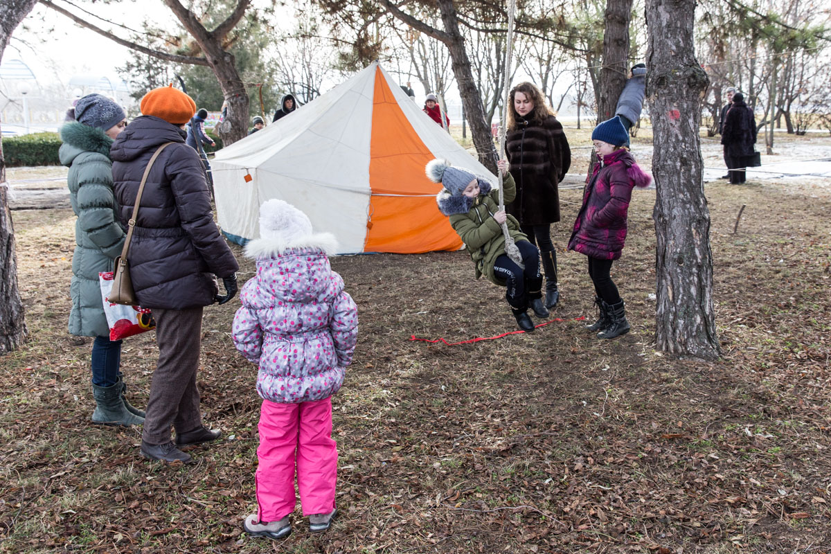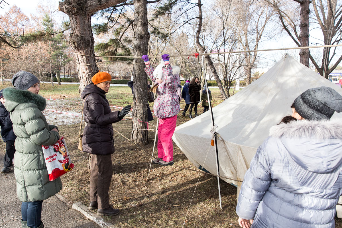 «Мы подготовили новогодние юмористические вещи: лыжную туристскую трассу без снега — нужно вдвоём шагать на одних и тех же лыжах, в руках палки лыжные, трасса и нужно по ней пройти. Рядом установили трассу домбайского бокса, когда нужно с завязанными глазами лупить друг друга свёрнутыми спальными мешками, натянули параллельные верёвки. Ещё дети могут покататься на маятнике и метать веники», — отметил директор станции юных туристов Николай Визитиу.