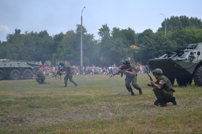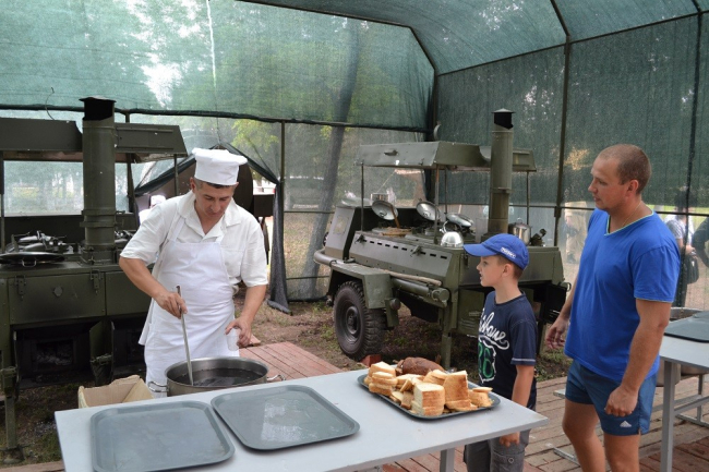 После театрализованного представления жителям города было предложено посетить выставку военной техники и вооружения на территории ОГРВ. Все желающие могли также подкрепиться — специально для гостей полевая кухня приготовила вкуснейшую солдатскую кашу.