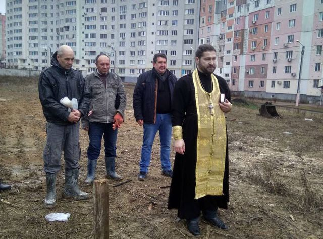 Ответственный за строительство и формирование общины протоиерей Петр Кузменых совершил молебен на начало богоугодного дела и обсудил со строителями дальнейший план работы.