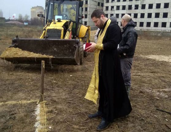 Протоиерей Петр Кузменых совершил на месте строительства молебен