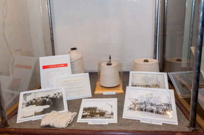 «Экспонаты на выставке расположены в хронологической последовательности. По фотографиям можно проследить строительство и развитие предприятия. Также можно рассмотреть производственный процесс: изготовление нитей, тканей и продукции», - рассказывает старший научный сотрудник отдела истории Наталья Немченко.