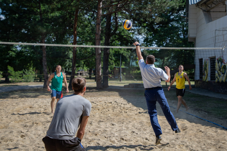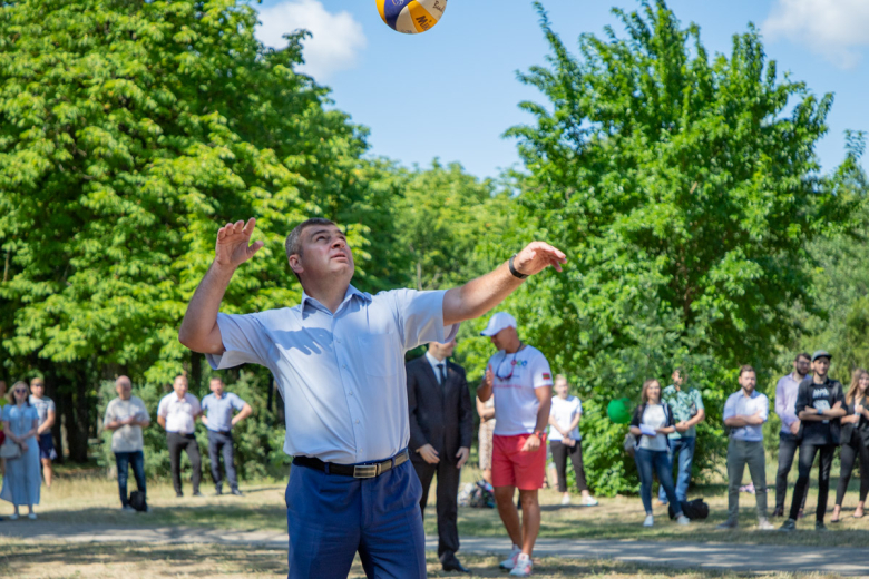 Право первого удара предоставили главе госадминистрации Тирасполя Олегу Довгополу, после чего площадку опробовали профессиональные волейболисты.