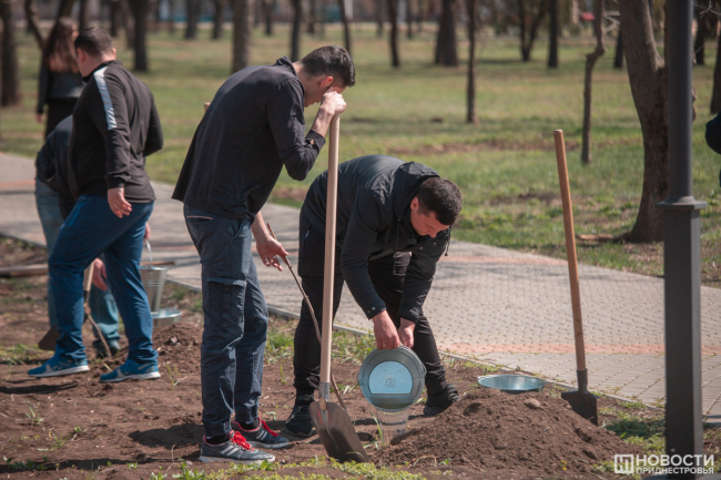 Тирасполь, 8 апреля. /Новости Приднестровья/. Апрель – традиционное время субботников. Одними из первых эстафету по благоустройству начали сотрудники Министерства внутренних дел. Около сотни представителей центрального аппарата сегодня пришли в Покровский парк (многие тираспольчане знают его как парк Кирова). Фронт работ весьма обширен: кто-то белил бордюры и выносил прошлогодний мусор, кто-то очищал газоны. Другая часть занималась озеленением.