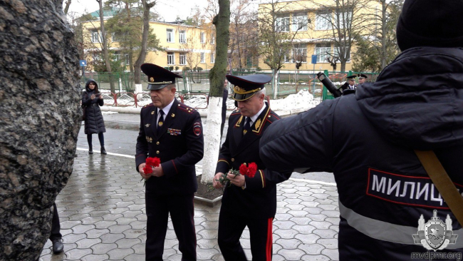 Тирасполь, 1 декабря. /Новости Приднестровья/. В столичном Управлении внутренних дел прошло торжественное собрание в честь 32-й годовщины перехода подразделения под юрисдикцию ПМР. Перед началом мероприятия министр внутренних дел Виталий Нягу, начальник УВД, замглавы госадминистрации Тирасполя и ветераны возложили цветы к памятнику милиционерам, погибшим при исполнении служебного долга.