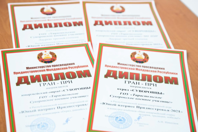По итогам игры юные дарования стали обладателями Гран-при в конкурсе альбомов «Наш юнармейский отряд: история, традиции, победы!» и конкурсе командиров «Отряд, равняйсь, смирно!». В конкурсе проектов «Армия будущего: взгляд призывника» воспитанники стали лауреатами третьей степени и взяли бронзу в общекомандном зачете, сообщает пресс-служба Минобороны ПМР.