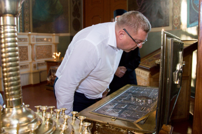 «Я стараюсь везде, куда приезжаю, неважно в командировку или в гости, всегда посетить духовные места, с историей. Здесь меня действительно впечатлили ваши раки со святыми мощами. Их очень большое количество, практически как на Афоне», – отметил экс-мэр.