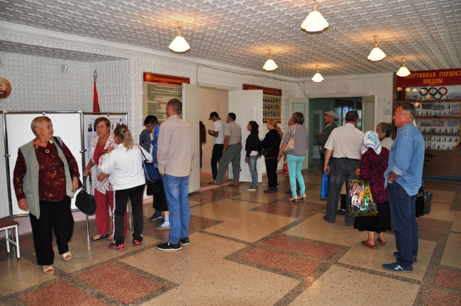 И действительно, на участке можно было наблюдать очереди. Даже в 8 утра, по словам Максима Степанова, было многолюдно. Многие приходят целыми семьями с детьми. Атмосфера на избирательном участке праздничная – играет музыка, организована продажа напитков и сладостей, да и сами избиратели приходят нарядно одетыми.