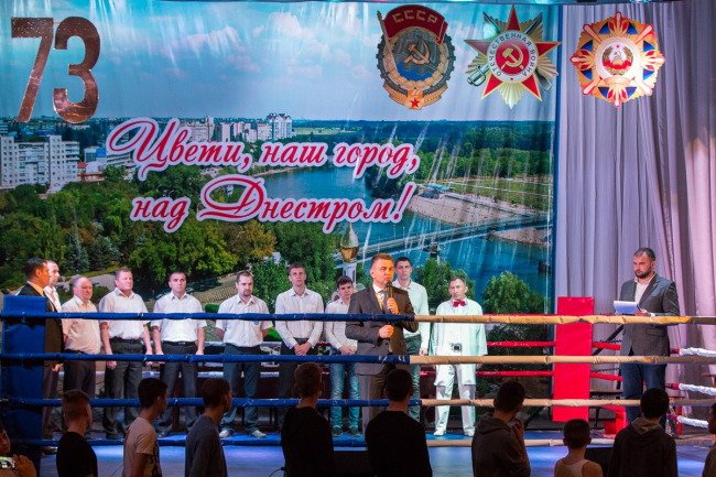 Приветствуя спортсменов и зрителей кубка по кикбоксингу, президент Вадим Красносельский отметил важность данного мероприятия. По его словам, оно напоминает о победе советского народа в Великой Отечественной войне.