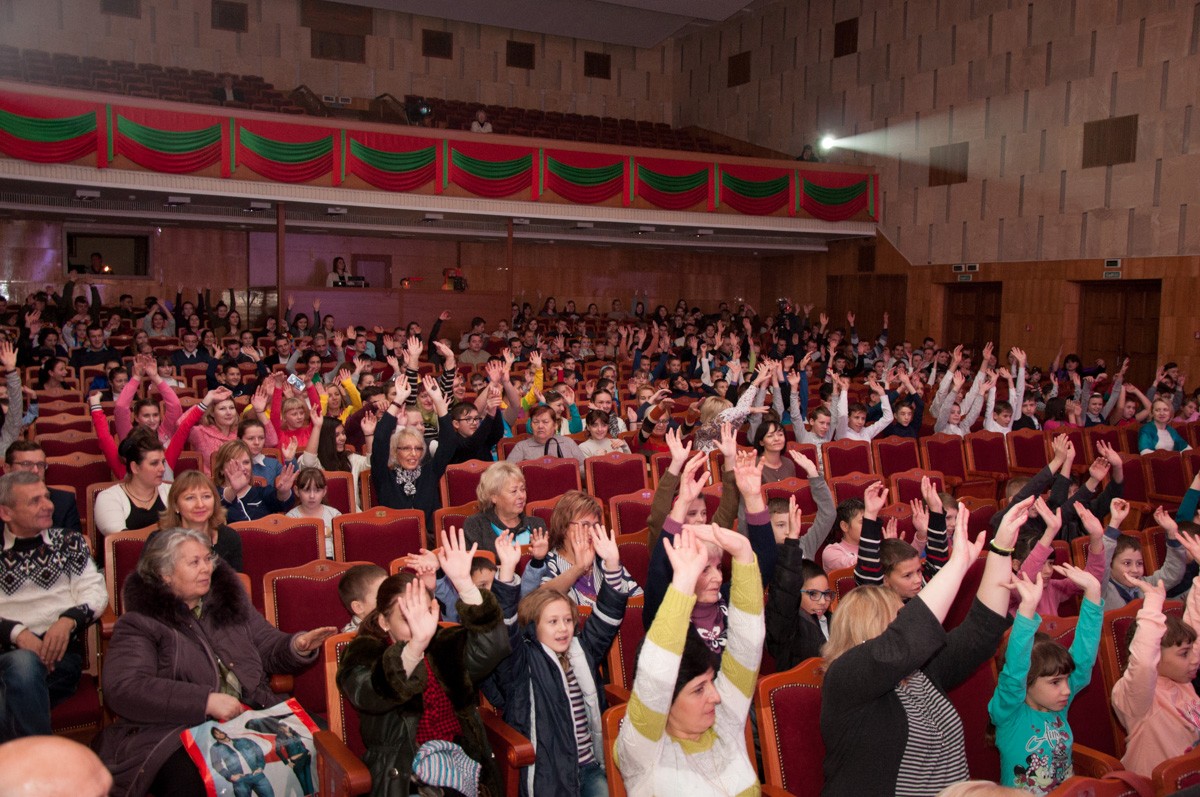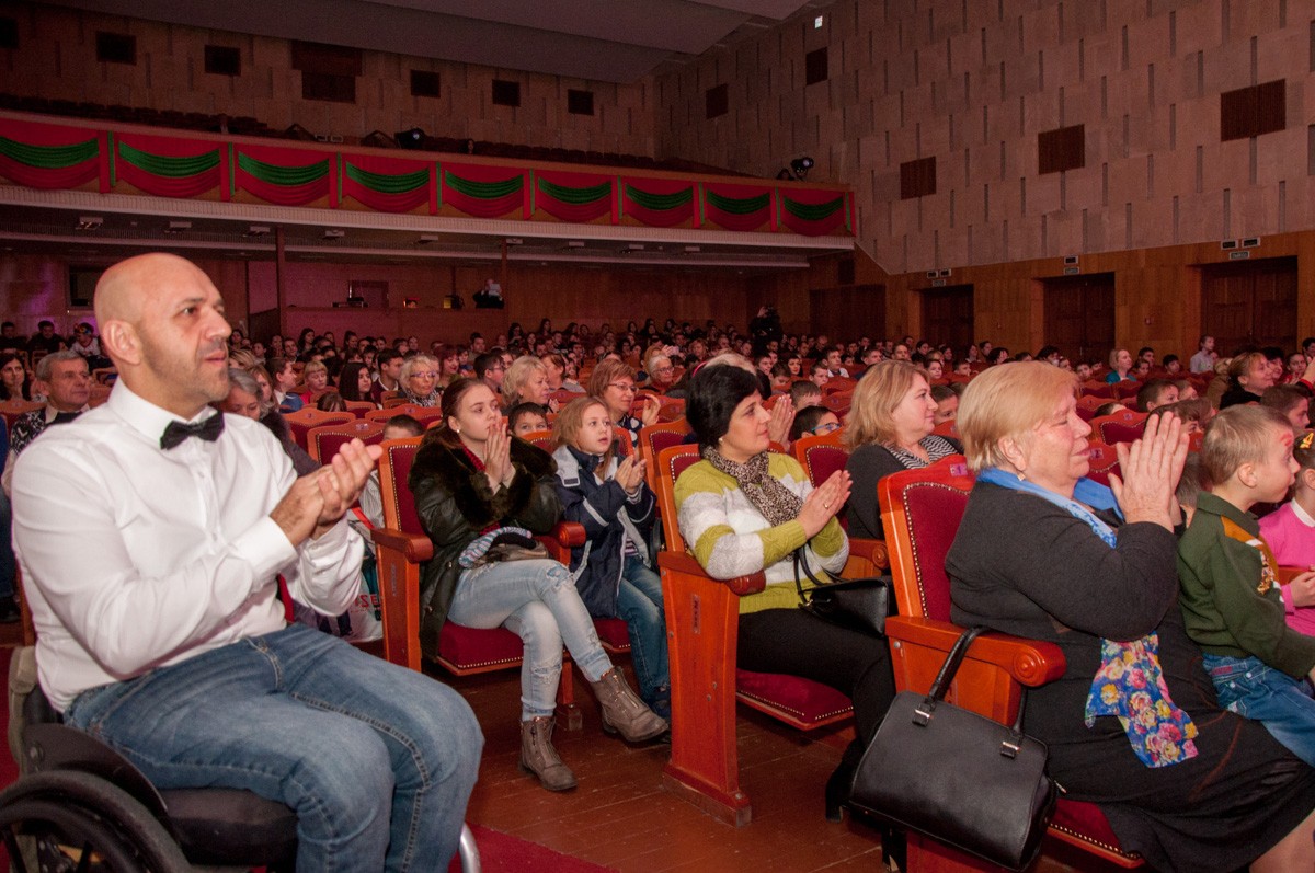 По её словам, на концертную программу во Дворец Республики приехали воспитанники коррекционных учреждений со всего Приднестровья – всего порядка 224 человек, в том числе 11 – на колясках.