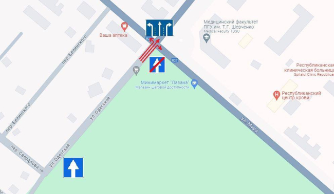 В Тирасполе на перекрёстке улиц Мира и Одесской установлен новый дорожный знак