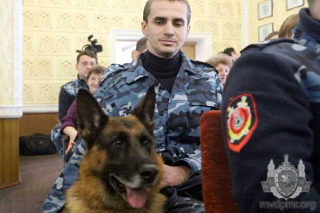 В Тирасполе наградили милицейскую овчарку и её наставника за помощь в раскрытии убийства