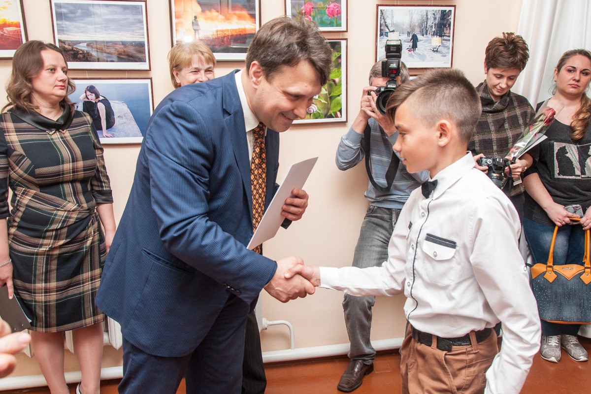 «То, что мы сегодня видим на стенах, — это мгновенья. Они вначале были запечатлены мимолётной вспышкой фотокамер в жизни отдельной личности, маленькой или взрослеющей. Но из этих мгновений ткётся один общий холст, которым можно покрыть всё наше Приднестровье. Хочу пожелать этому традиционному конкурсу дальнейших успехов и не останавливаться на достигнутом», — обратился к участникам фотовыставки Александр Щерба.