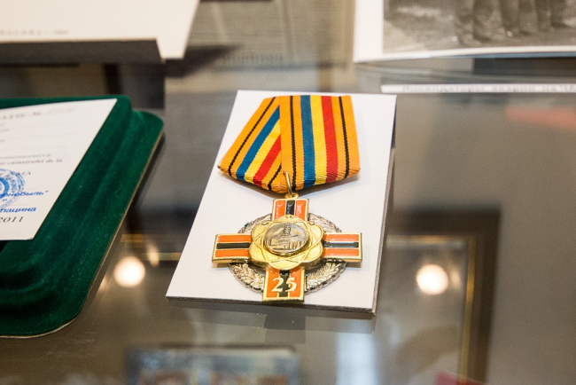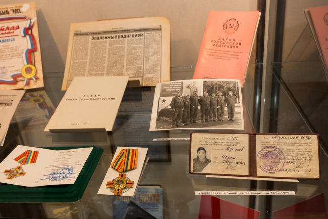 На выставке представлено более 70-ти экспонатов. Среди них — документы, фото, защитные костюмы, дозиметры, предметы одежды и быта, почетные грамоты и награды непосредственных участников ликвидации трагедии в Чернобыле.