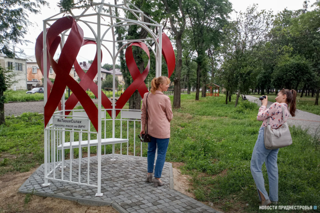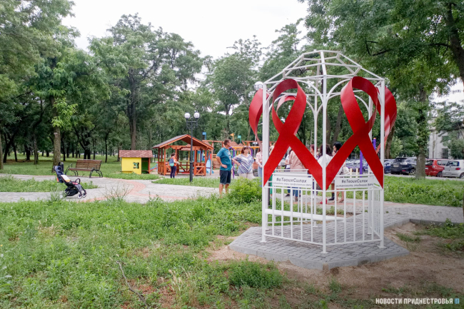 Тирасполь, 6 июля. /Новости Приднестровья/. В Тирасполе открыли арт-объект, посвящённый памяти людей, умерших от СПИДа. Это беседка с красными ленточками – символом солидарности с теми, кто болеет ВИЧ. Автор идеи – «Альянс общественного здоровья». Организация работает в сотрудничестве с Минздравом и МВД, оказывает психолого-социальную помощь больным СПИДом и занимается профилактикой распространения этой инфекции.