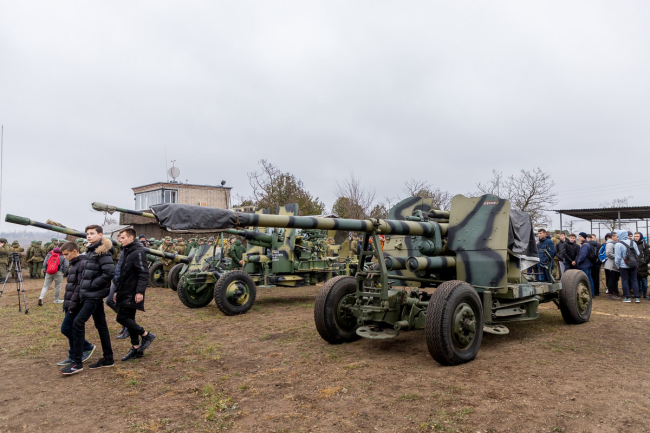 Необходимость математических знаний для артиллериста подчеркнул и командир одного из подразделений Иван Куценко. Он отметил, что нужно уметь учитывать ветер, его направление, чтобы правильно рассчитать траекторию полёта снарядов. Артиллерист рассказал об особенностях орудия, на котором сегодня работал со своими товарищами.