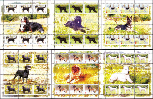 Серия состоит из шести марок, на которых представлены крупные породы собак