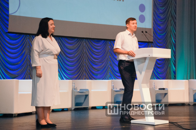 В заключение пленарного заседания форума Светлана Иванишина и Алексей Цуркан наградили молодых педагогов - победителей Республиканского конкурса на получение премий Президента ПМР.