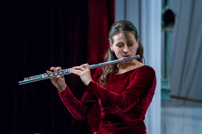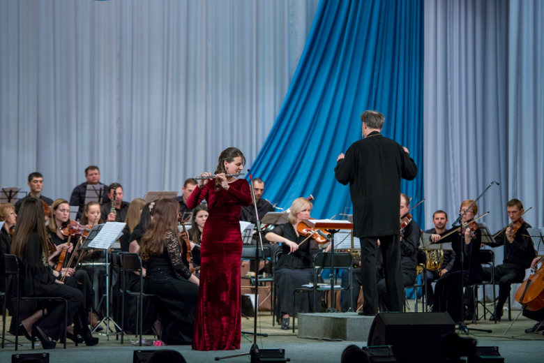 Зал аплодирует. Пару минут, чтобы оркестр мог передохнуть. Представляют следующую солистку – флейтистка Ирина Каракаш, которая будет исполнять лидирующую партию в концерте француза Жака Ибера.