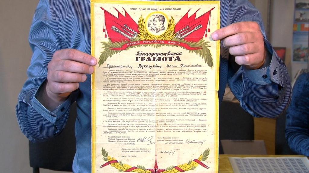 Ко Дню освобождения города от немецко-румынских захватчиков директор ГУП «Марка Приднестровья» из личного архива передал в дар Тираспольскому объединенному музею в качестве экспоната грамоту красноармейца, датированную 45-м годом прошлого столетия.