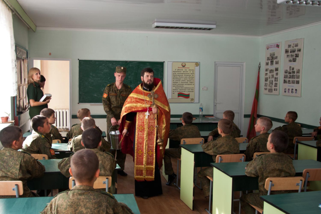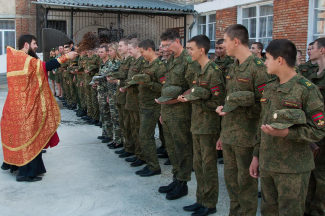 Тирасполь, 11 сентября. /Новости Приднестровья/. В Тираспольском Суворовском военном училище прошел обряд освящения. Войсковой священник иерей Максим Сергеев окропил святой водой суворовцев и совершил чин освящения помещений учебного заведения, уточняет пресс-служба Минобороны.