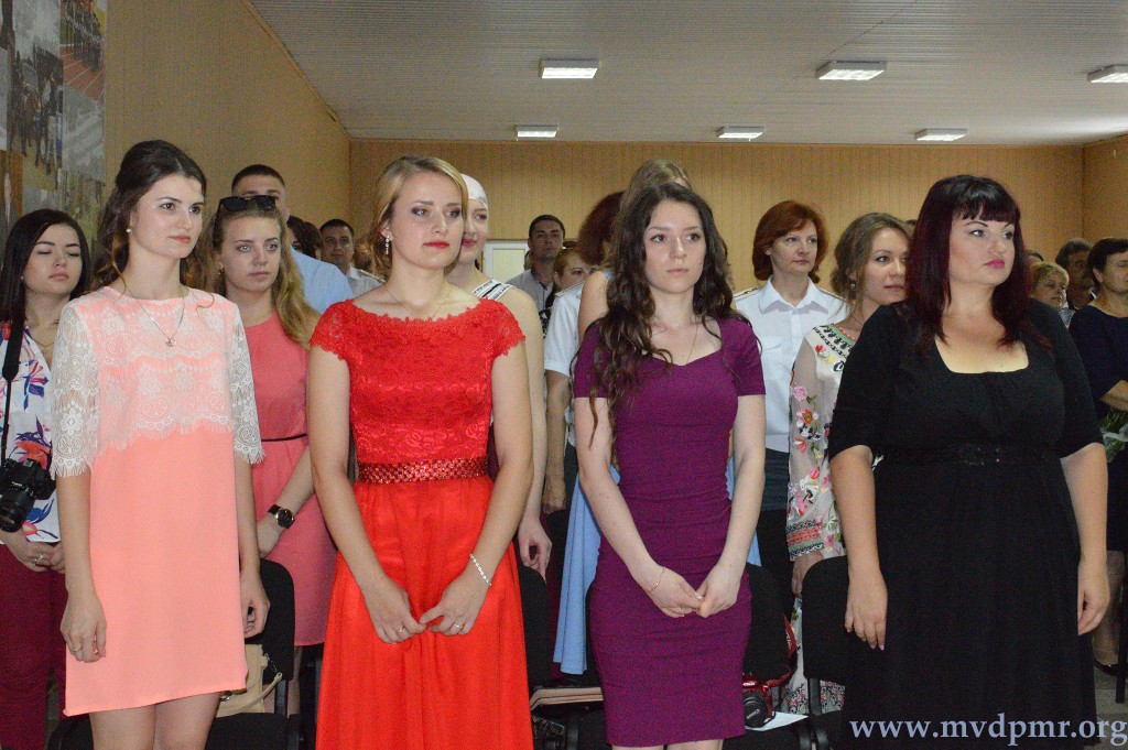 Поздравить виновников торжества с важным в их жизни событием прибыл министр внутренних дел ПМР Руслан Мова, сообщает пресс-служба ведомства. Также в зале присутствовали руководство и профессорско-преподавательский состав института, родные и близкие выпускников. Из рук министра внутренних дел дипломы с отличием и памятные подарки за высокие показатели в учёбе, а также за активное участие в общественной жизни института получили шесть человек.