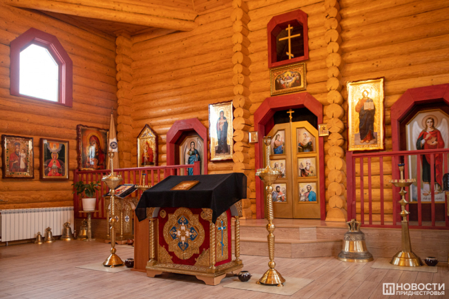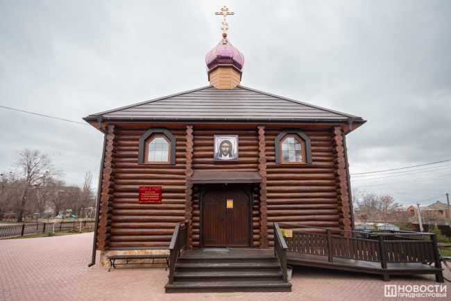 Казачий храм – именно в таком виде – в этом районе Тирасполя открыли в 2019 году. До этого около 7 лет работала часовня при музее порохового погреба. Новую деревянную церковь отстроили по тем же правилам, по каким раньше возводили храмы в наших краях: в Приднестровье, Молдове и на юге Украины. Её привезли по частям и собрали уже тут.
