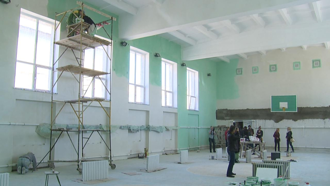 Также ремонт проводится в актовом зале младшей школы. Работы здесь планируют закончить к середине мая.