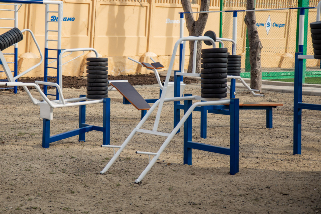 Тренажёры есть и на улице. Заниматься на открытом воздухе можно и вечером – вся территория освещена и доступна для курсантов и преподавателей ТЮИ.