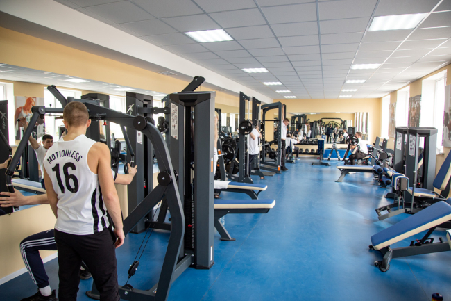 Тренажёрный зал – тоже повод для гордости. Профессиональное оборудование американского производства привезли из Украины. Такое есть только в коммерческих залах высокого уровня.