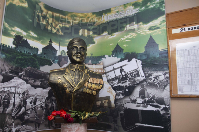 В Военном институте Министерства обороны им. генерал-лейтенанта А.И. Лебедя сегодня установили бюст легендарному командарму. Институт с 2012 года носит имя бывшего командующего 14-й Общевойсковой армией, который сыграл решающую роль в урегулировании вооруженного конфликта в 1992 году. На открытии бюста присутствовал депутат Верховного Совета Сергей Васильев, который в девяностых проходил службу под командованием Александра Лебедя, сообщает пресс-служба Минобороны.