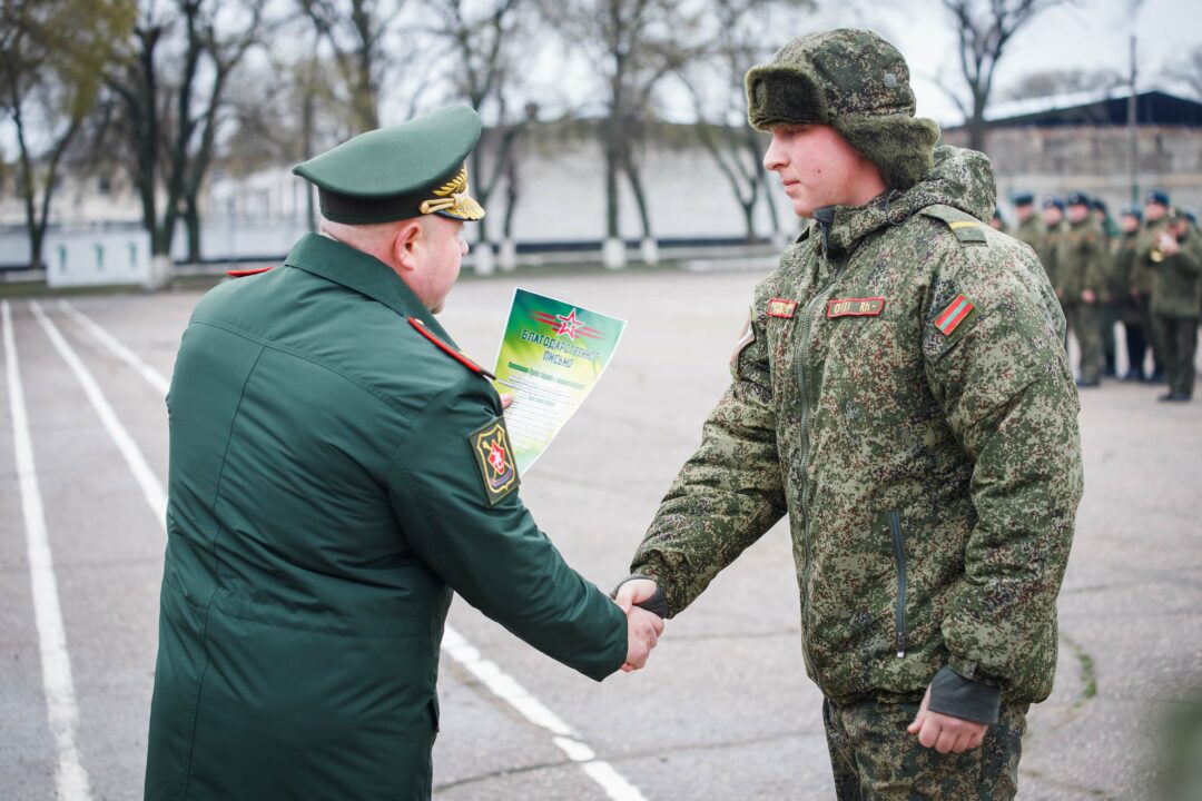 По итогам года лучших военнослужащих по призыву поощрили грамотами министра обороны и очередными воинскими званиями