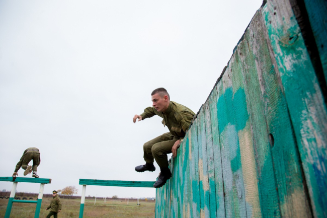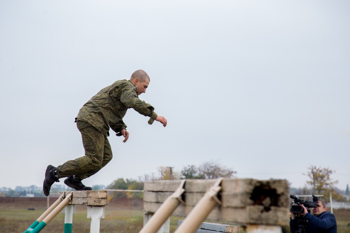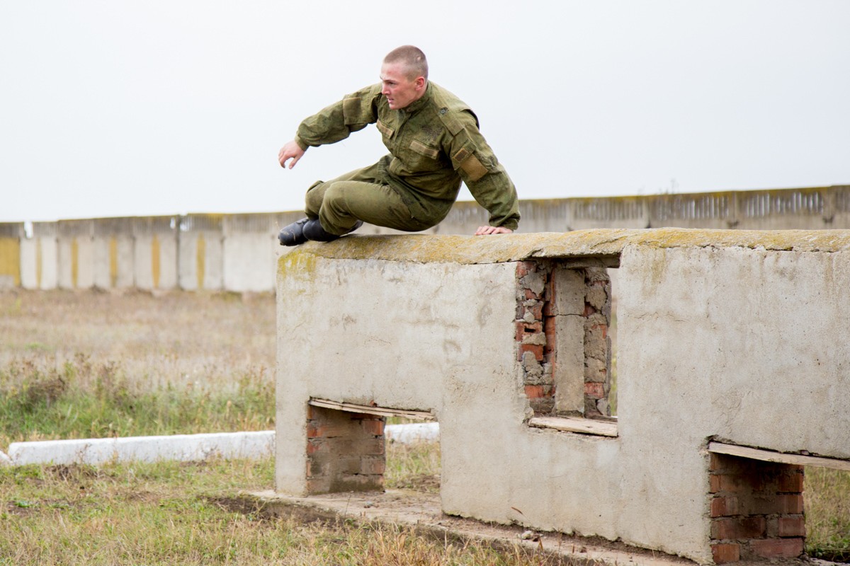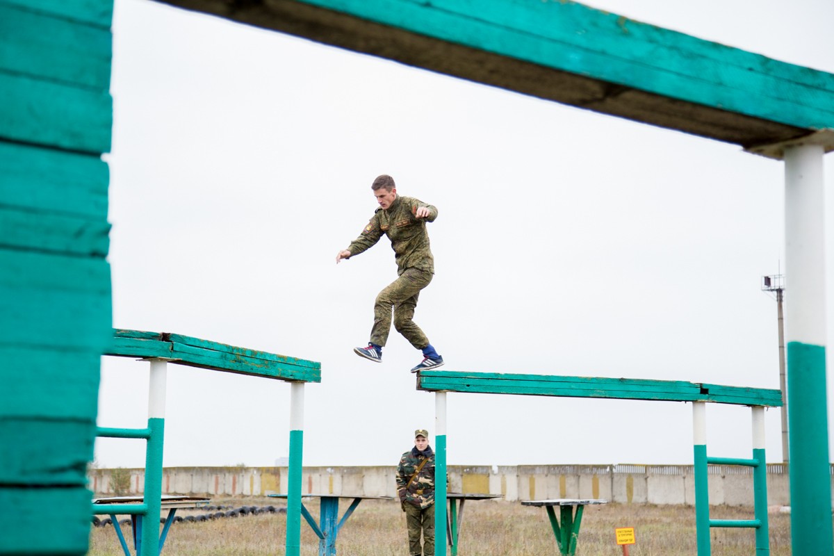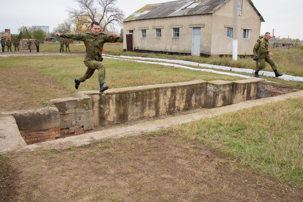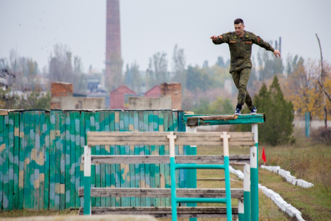 «Полоса препятствий смоделирована для преодоления полуразрушенных зданий и стен, природных оврагов, упавших деревьев. Вначале нужно было преодолеть двухметровый ров, затем двухметровую стену, на этом этапе включается борьба с боязнью высоты», - пояснил начальник отдела физической подготовки и спорта Министерства обороны Илья Бурдыгин.